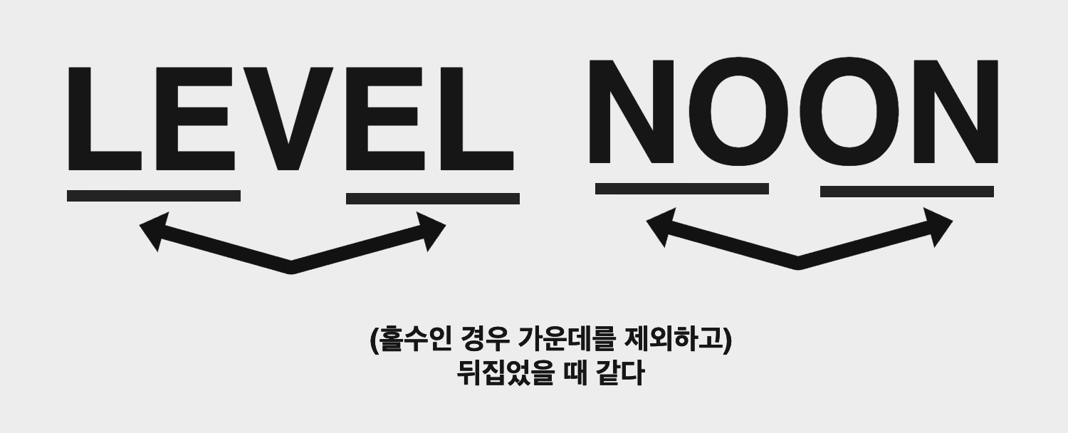 ์๋ฅผ ๋ค์ด์ level, noon, eye ๋ฑ๋ฑ์ด ์๋ค.