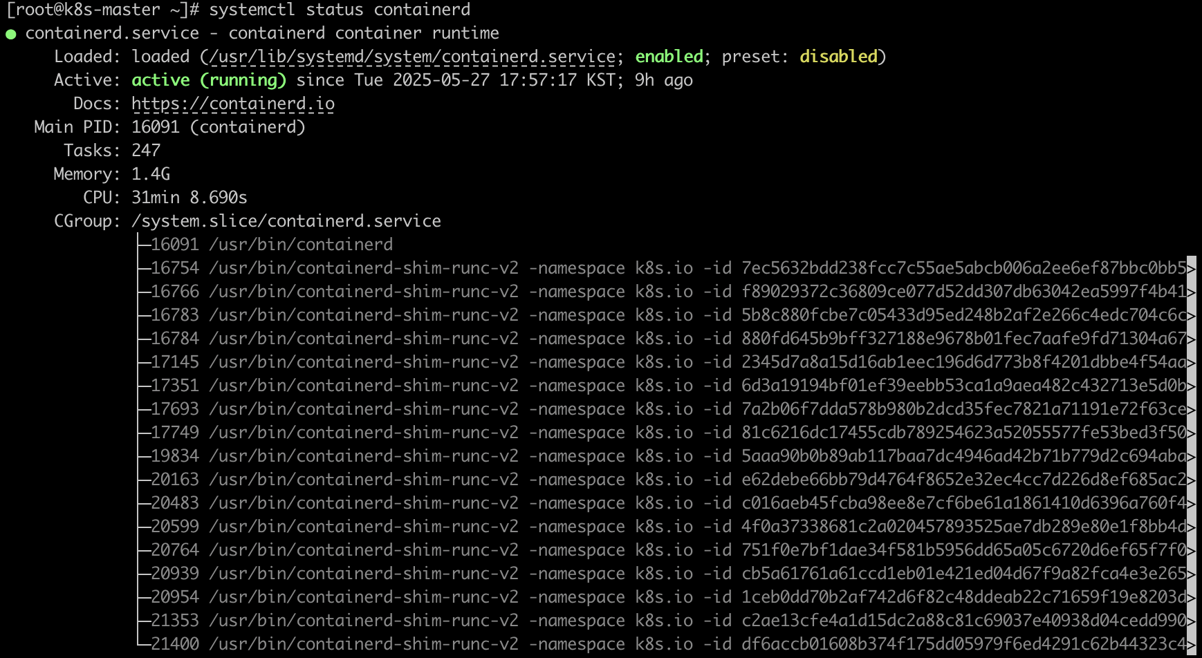 → Active : active (running) 으로 현재 containerd 가 실행되고 있음