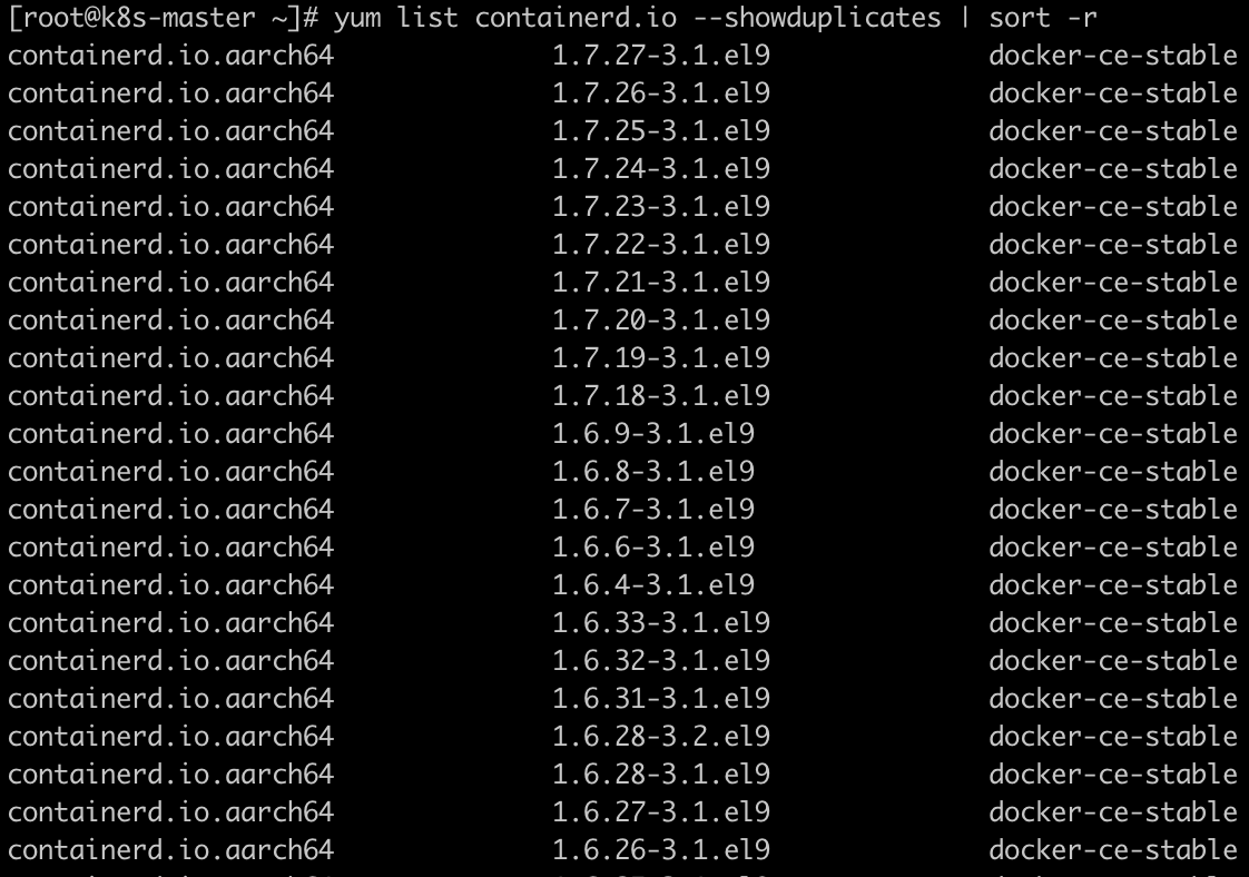yum list containerd.io --showduplicates | sort -r