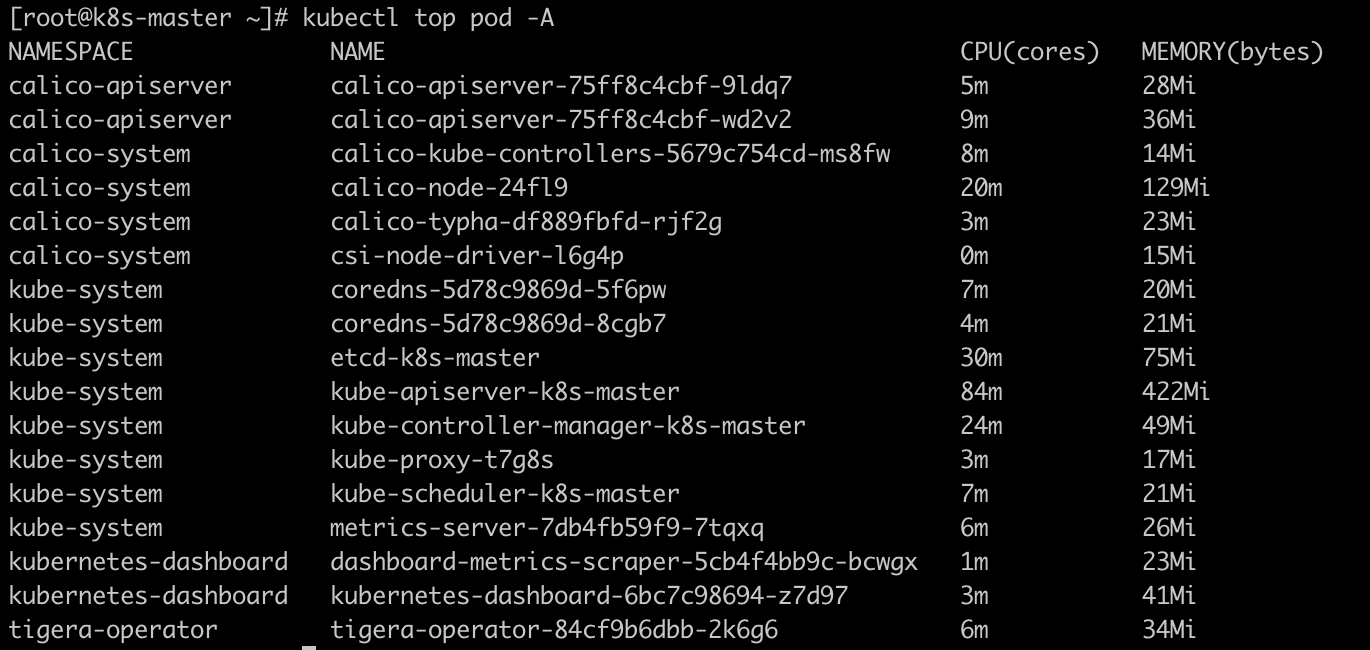 kubectl top pod -A