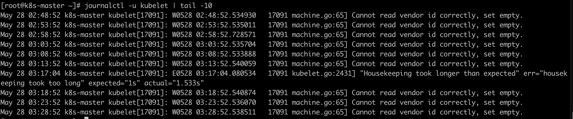 journalctl -u kubelet | tail -10