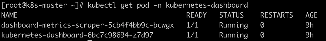 kubectl get pod -n kubernetes-dashboard