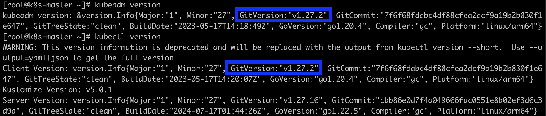 → kubeadm 과 kubectl 모두 버전이 1.27.2