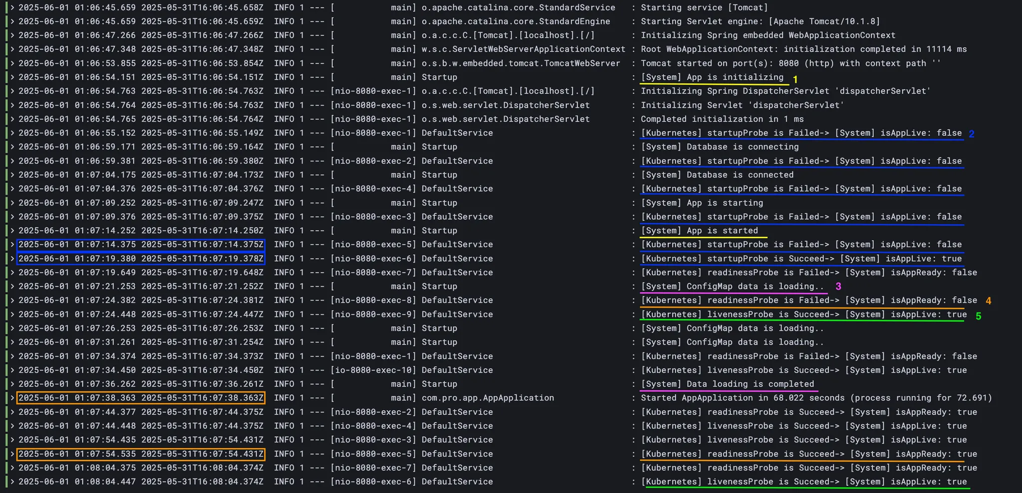 - pod 생성 → Jar 실행 → Spring 초기화 → DB 연결