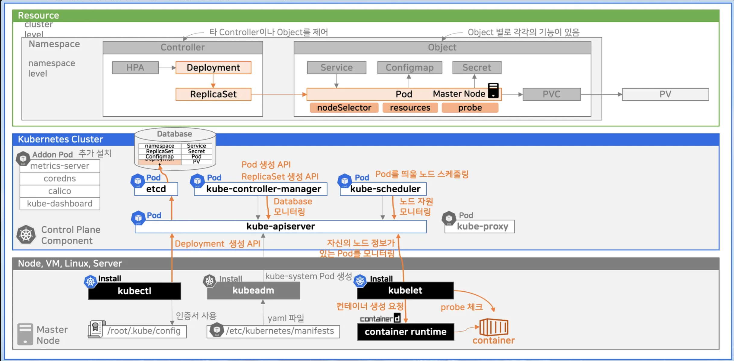 - ์ ๋ฆฌ์์ค๋ค์ Control Plane Component ๋ผ๋ Pod ์ ์ํด์ ๋์