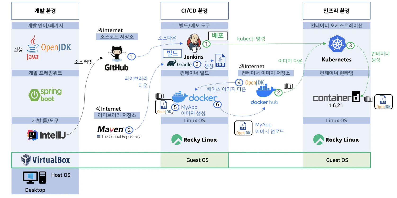 - 인프라 환경에서는 실행파일과, 개발 (OpenJDK) 가 있어야 한다