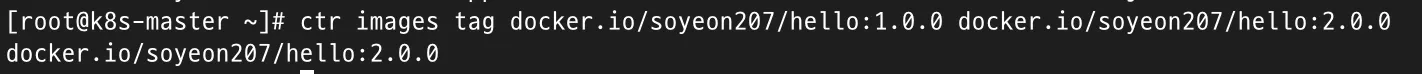 ctr images tag docker.io/soyeon207/hello:1.0.0 docker.io/soyeon207/hello:2.0.0