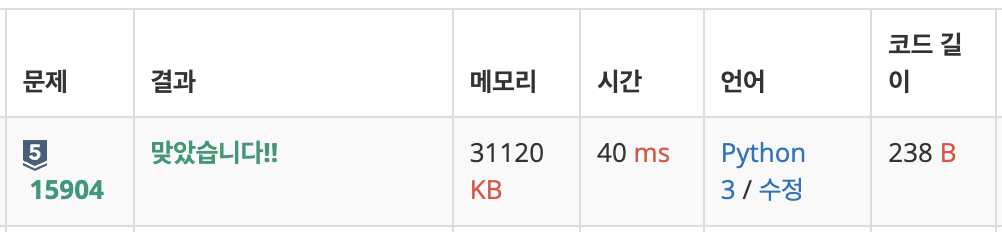 | [๋ฐฑ์ค] 18310๋ฒ ์ํ ๋ (Python) (0) | 2024.08.20 |