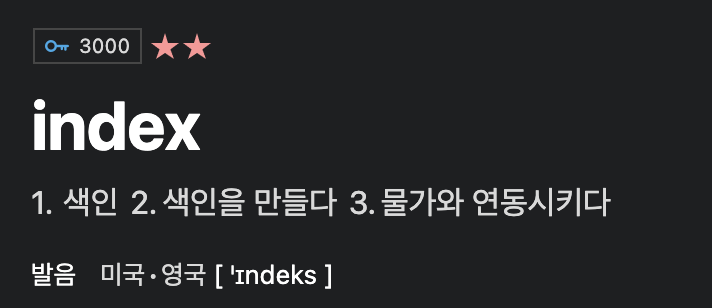 ๋ค์ด๋ฒ ์์ด ์ฌ์ ์์ index ๋ ๋ฌด์จ ์๋ฏธ์ธ์ง ์ฐพ์๋ณด๋๋ก ํ๊ฒ ์ต๋๋ค.