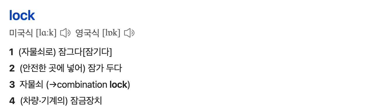 Lock μ μμ΄λ‘ "μ κ·Έλ€, μ κ° λλ€" λΌλ λ»μ κ°μ§κ³ μμ΅λλ€. π