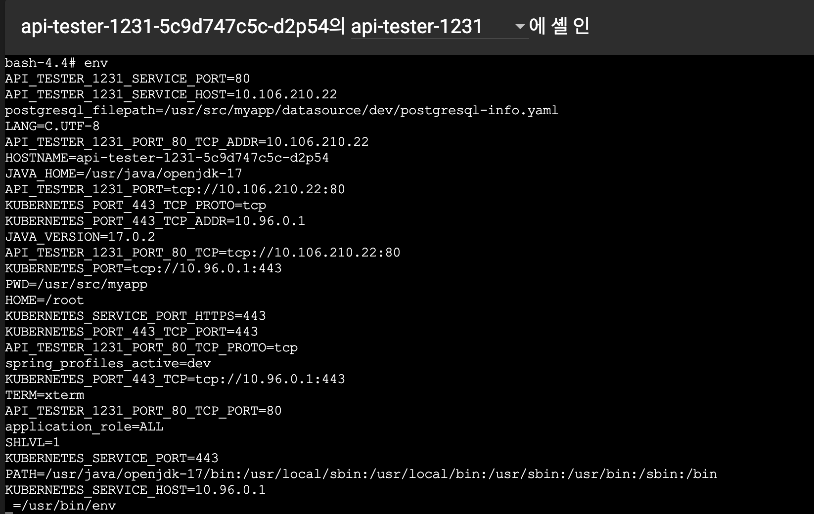 pod ์ ๋ค์ด๊ฐ์ env ํ์ธํ๊ธฐ